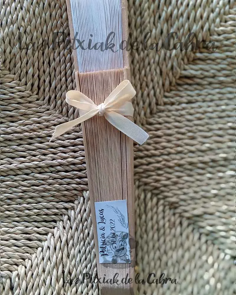 Precioso Abanico Adornado Madera de 23cm. en color natural y rematado en tela marfil. Además, vienen adornados con un bonito lazo de rafia o tela. Ideales para vestir a las novias románticas, damas de honor incluso a las asistentas a una boda. Prácticos y elegantes sorprenderá a los invitados con este regalo. Perfecto para los meses calurosos.