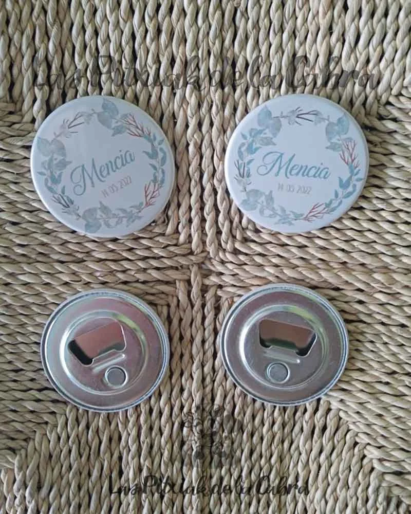 Las Chapas con abridor miden 59 mm. En este caso nos los encargaron unos padres para regalar en la comunión de su hija.