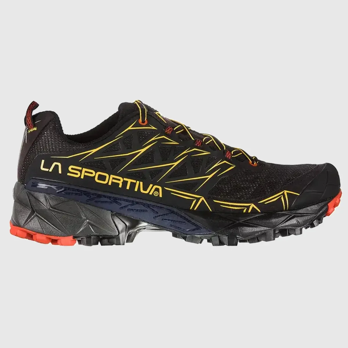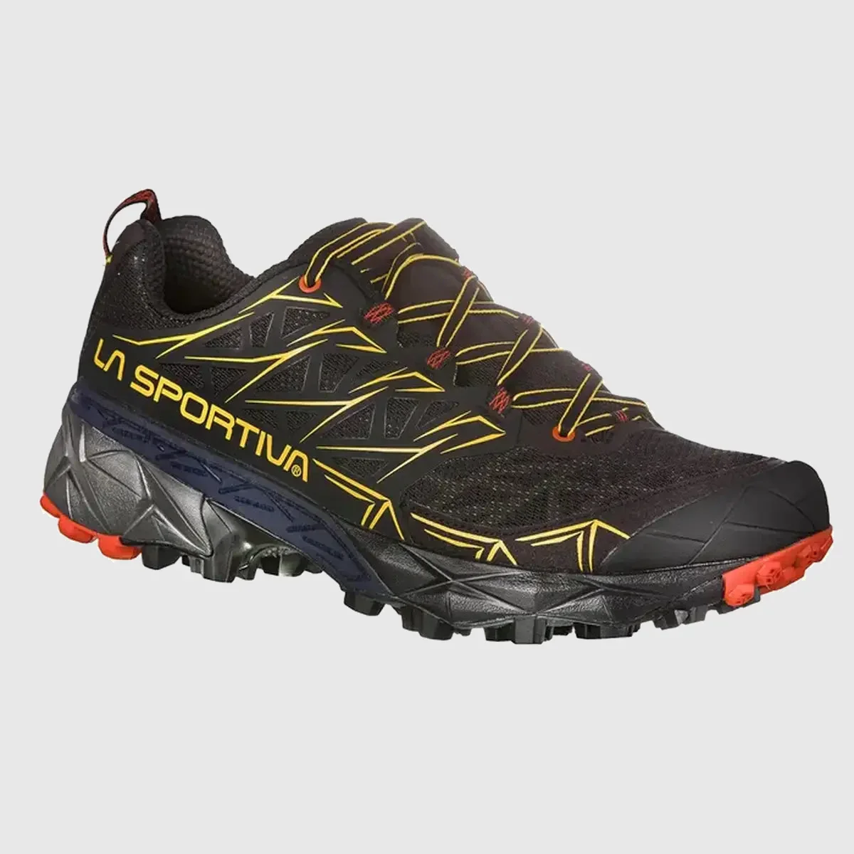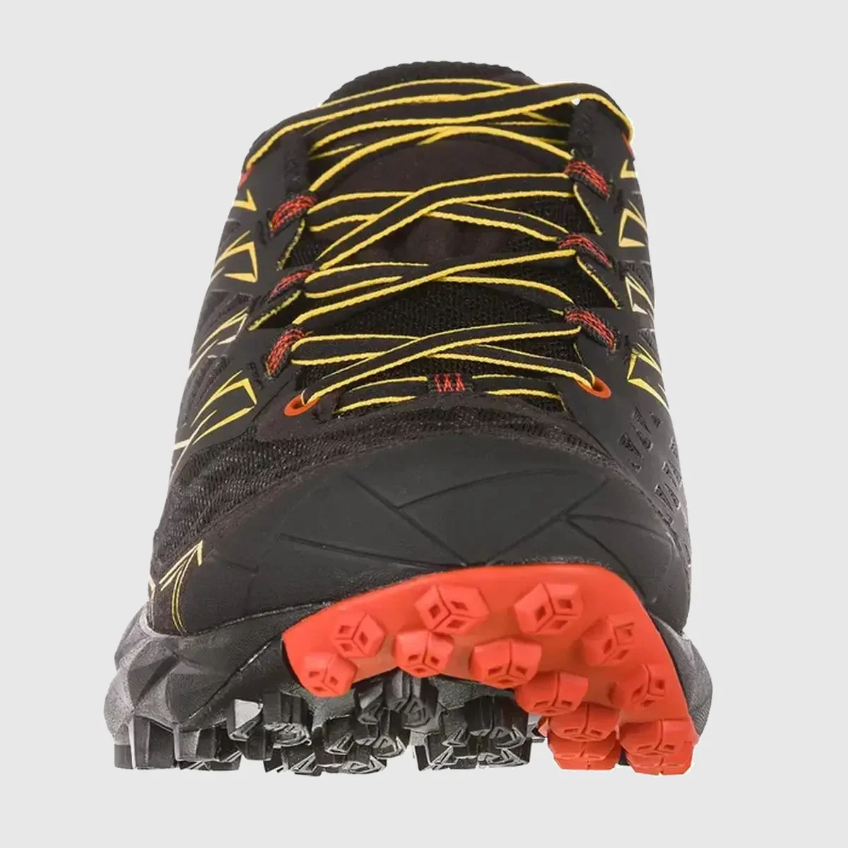 Adopta una forma superior envolvente y confortable en 3 capas: confort, gracias a la construcción seamless, flexibilidad de la estructura gracias a la innovadora aplicación MicroLite Skeleton™ que sigue el movimiento del pie de forma dinámica en carrera, protección garantizada con la estructura Flex-Guard™ de microfibra que mantiene el calzado ligero y proporciona una barrera contra la abrasión producida por el roce. Gran estabilidad gracias a la tecnología TrailCage System™ colocado entre las dos capas superior y envolvente integrándose con el sistema de cordones. La suela ha sido desarrollada por el departamento de I+D de La Sportiva y cuenta con la nueva banda adherente FriXion XT con Impact Brake System, diseño exclusivo con tecnología Trail Rocker que favorece el apoyo natural “talón externo-punta interna del pie durante la carrera. Amortiguación, protección y confort, 3 partes de una geometría perfecta: el origami, el cual se inspira el diseño del calzado. Con Akira correr es un arte.