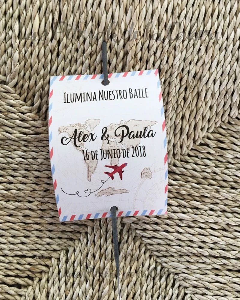 ¿Sabías que…? Este modelo de Bengalas Álex&Paula, fue un diseño que hicimos para unos novios que nos contaron como querían que fuera ya que su boda tenía temática viajera y le preparamos varias propuestas que modificaron a su gusto y una vez acertamos con lo que querían y nos dieron su visto bueno, lo pusimos en marcha.