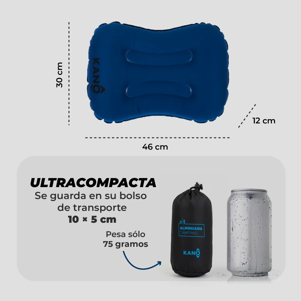 Descansa como nunca, sin importar dónde estés, con la almohada de camping Kano. Su diseño ergonómico y curvo brinda soporte tanto al cuello como a la zona lumbar, asegurando comodidad en cada posición. Compacta, ultraligera y fácil de transportar, es tu compañera ideal para viajes, campamentos, senderismo o cualquier momento en que busques relajarte con total confort.