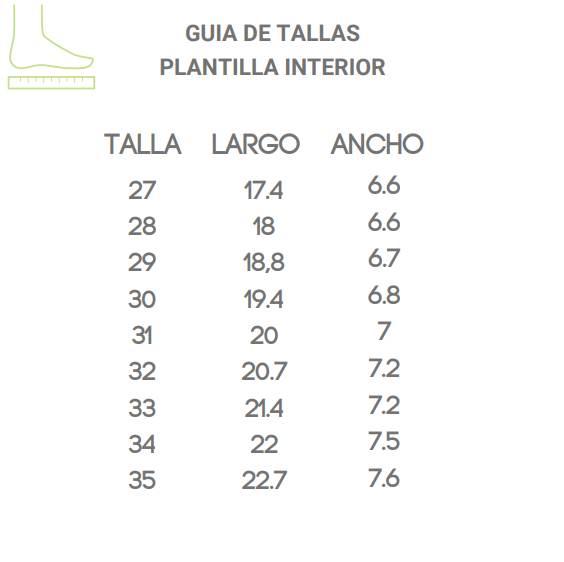 • Disponibles en tallas de la 23 a la 32, ideales para acompañar el crecimiento.