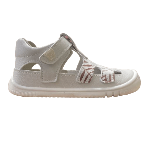 Piruflex nos trae para esta temporada unas bonitas sandalias en color blanco y rosa con un dibujo de motivos florales en la parte superior. Están hechas de microfibra y por tanto son totalmente veganas. La forma de la horma es anatómica, tienen una fina suela de entorno a 3 mm y 0 drop