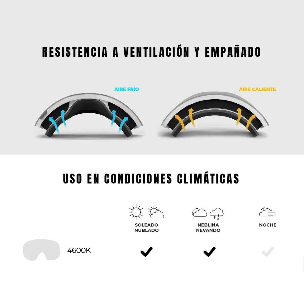 - Lente de 4600k que da una buena percepción del contraste y una reproducción de colores precisa en condiciones de luz diurna o mixta en la montaña