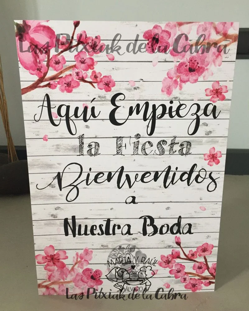 Como todos nuestros artículos, hacemos el diseño totalmente personalizado para los carteles de bienvenida. Todos nuestros artículos llevan un apartado de personalización en el que podéis escribir cualquier cosa que queráis modificar. Si os gusta este cartel pero queréis cambiarle el texto, añadir una foto vuestra, vuestro logo, o lo que se os ocurra, escribidlo en el apartado de personalización. Cualquier cosa que queráis que incluyamos, enviadla al mail del pedido.
