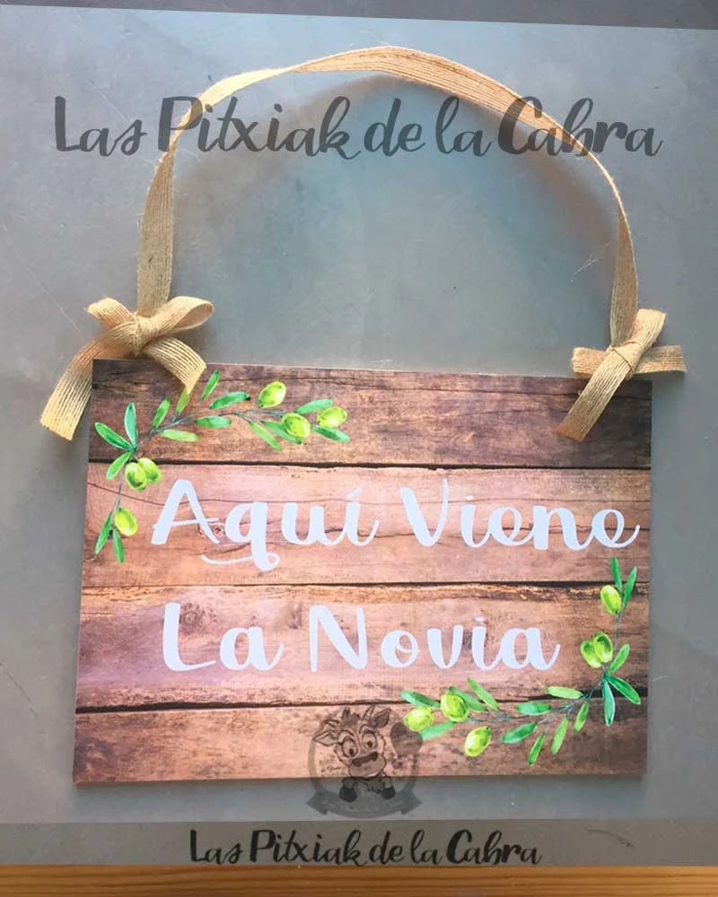 Los carteles de aquí viene la novia, se utilizan en la ceremonia para que los pajes o damitas anuncien la llegada de la novia, del novio o lleven alguna frase graciosa.
