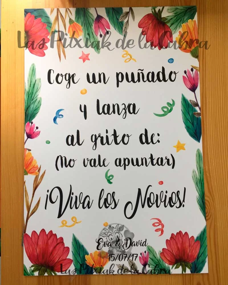 Como todos nuestros artículos, hacemos el diseño totalmente personalizado para los carteles. Todos nuestros artículos llevan un apartado de personalización en el que podéis escribir cualquier cosa que queráis modificar. Si os gusta este cartel pero queréis cambiarle el texto, añadir una foto vuestra, vuestro logo, o lo que se os ocurra, escribidlo en el apartado de personalización. Cualquier cosa que queráis que incluyamos, enviadla al mail del pedido.