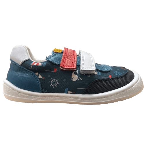 Zapatillas Infantiles Barefoot Azul con Barcos – Comodidad y Protección para los Pequeños Exploradores