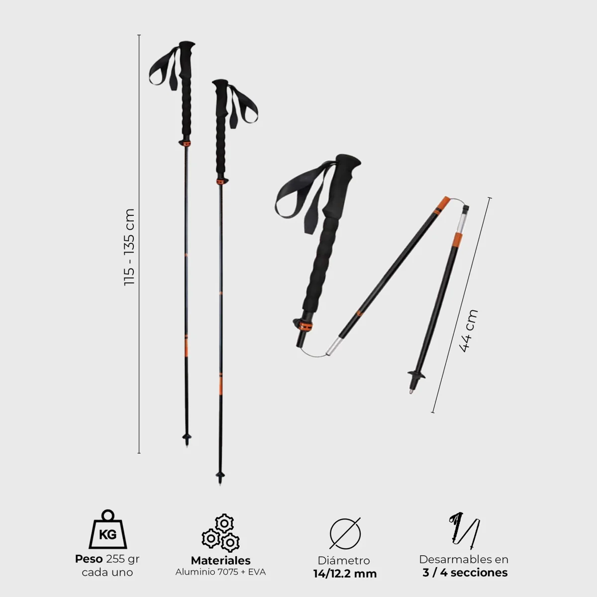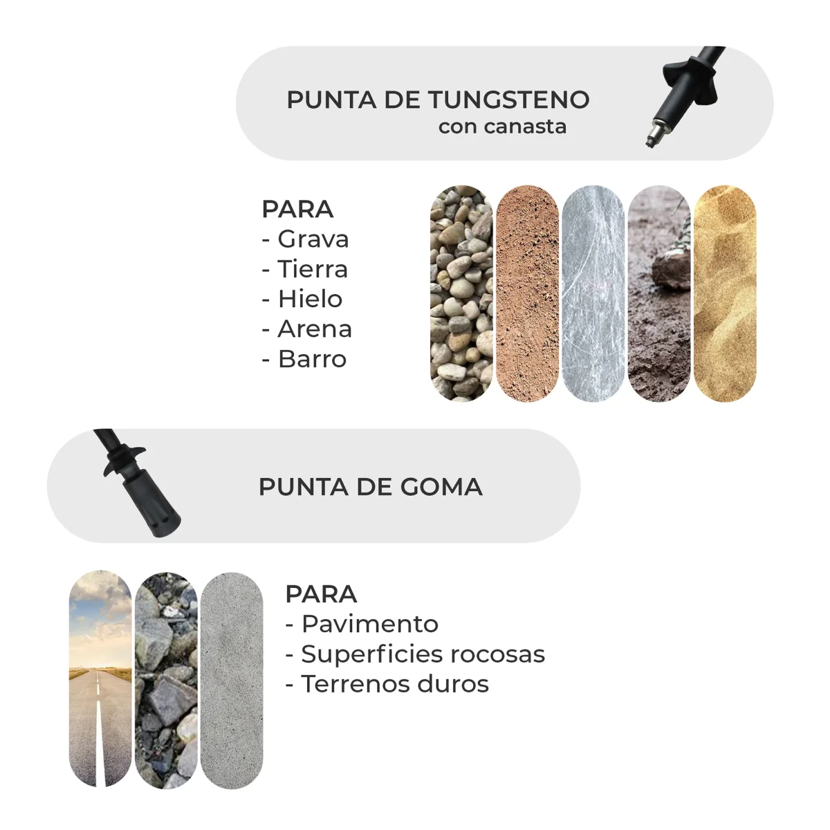 - Cuentan con marca de altura para que puedas estandarizar la longitud de los bastones a tu comodidad