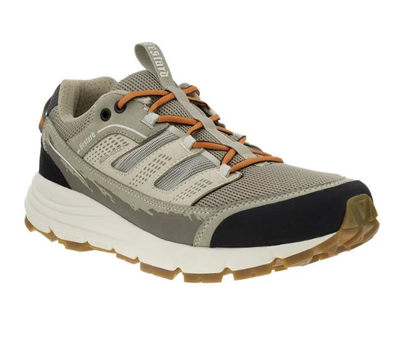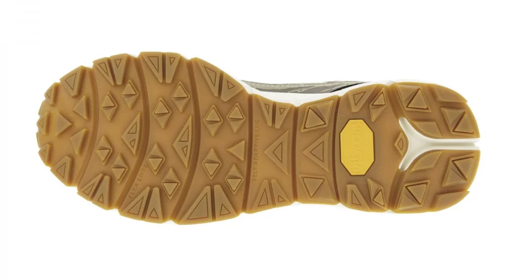 La puntera reforzada de caucho ofrece mayor durabilidad y protección en terrenos irregulares, mientras que la suela Vibram Fuga con compuesto Megagrip garantiza un agarre excepcional en distintos tipos de superficie.