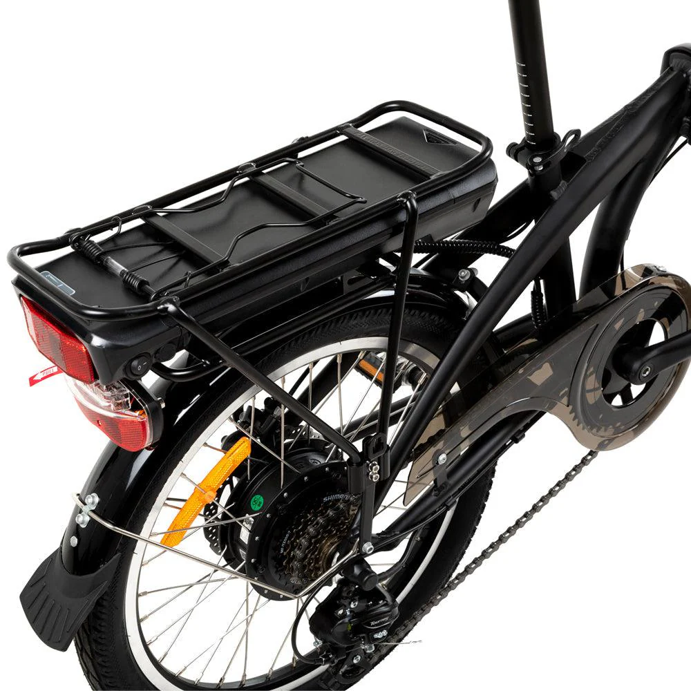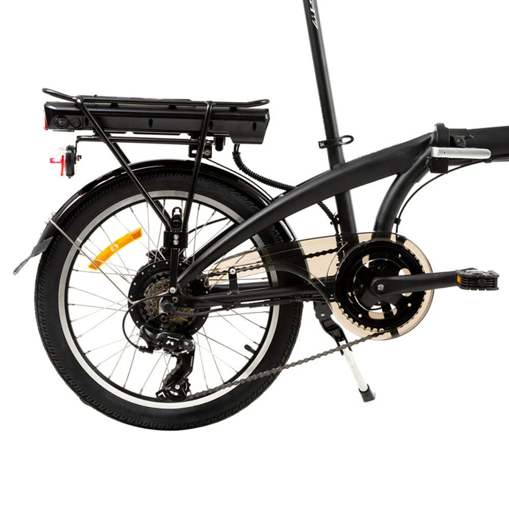 - Marco 20” en aluminio – Tenedor en acero – Rines: 20” – Llantas Chaoyang 20*2.0 – Cambios: 7 Velocidades – Jgo de dirección en aluminio – Manzana delantera: 9¨*75*83, 14G*28H Trasera: 3/8*120*168mm 14G*28H,18T – BB Set NECO910 113.5mm – Juego de freno: Freno de disco – Plato: 44T*170L / Cadena: KMC Manubrio en aluminio 560mm * 22.2 – Espiga en aluminio – Caña en aluminio 27.2 – Mangos: L=125mm, R=90 – Pedales: FP-909 – Galapago VD1150 – Batería: Li-ion LITIO 36 Voltios 8.8Amp – Potencia 350 WATT – Autonomía: 80 kms – Comando análogo – Voltage 36V – Tiempo de carga: 5-6 Horas – Peso: 18kg
