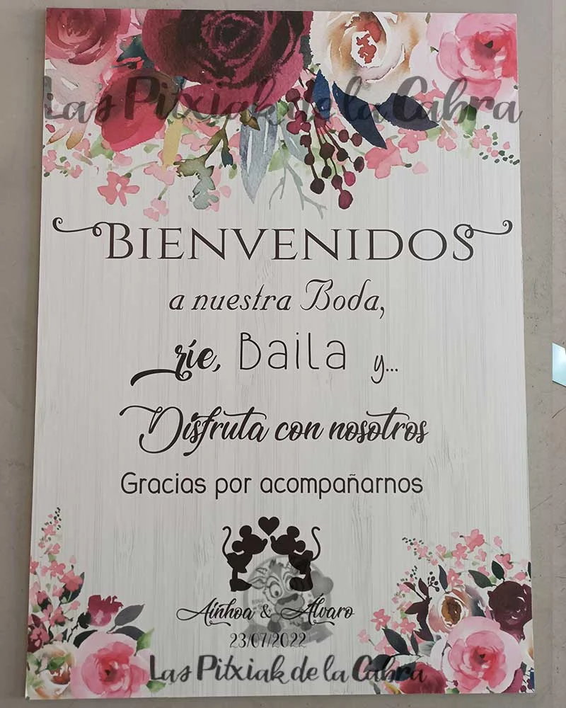 Como todos nuestros artículos, hacemos el diseño totalmente personalizado para los carteles de bienvenida. Todos nuestros artículos llevan un apartado de personalización en el que podéis escribir cualquier cosa que queráis modificar. Si os gusta este cartel pero queréis cambiarle el texto, añadir una foto vuestra, vuestro logo, o lo que se os ocurra, escribidlo en el apartado de personalización. Cualquier cosa que queráis que incluyamos, enviadla al mail del pedido.