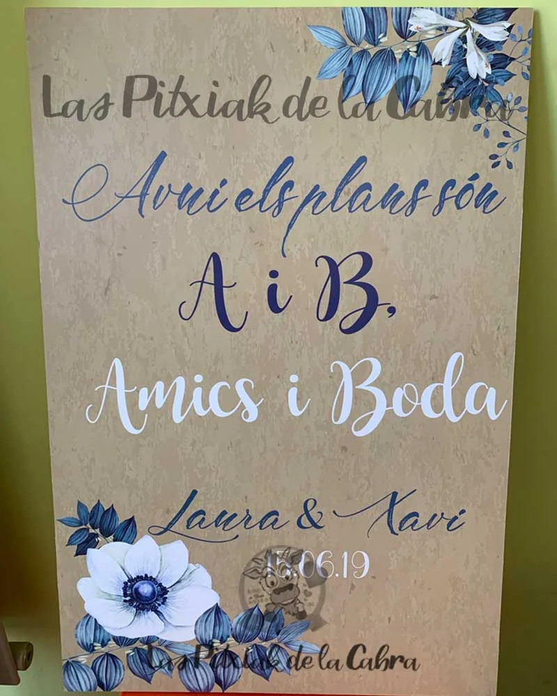 Como todos nuestros artículos, hacemos el diseño totalmente personalizado para los carteles de bienvenida. Todos nuestros artículos llevan un apartado de personalización en el que podéis escribir cualquier cosa que queráis modificar. Si os gusta este cartel pero queréis cambiarle el texto, añadir una foto vuestra, vuestro logo, o lo que se os ocurra, escribidlo en el apartado de personalización. Cualquier cosa que queráis que incluyamos, enviadla al mail del pedido.