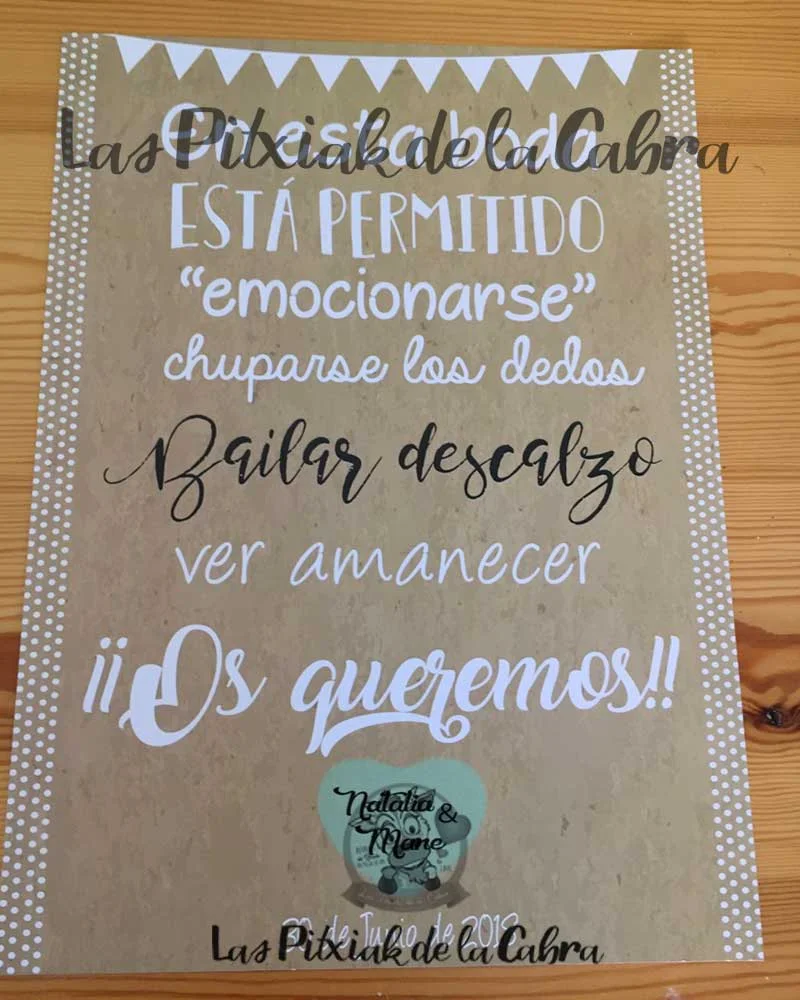 Como todos nuestros artículos, hacemos el diseño totalmente personalizado para los carteles de bienvenida. Todos nuestros artículos llevan un apartado de personalización en el que podéis escribir cualquier cosa que queráis modificar.  Si os gusta este cartel pero queréis cambiarle el texto, añadir una foto vuestra, vuestro logo, o lo que se os ocurra, escribidlo en el apartado de personalización. Cualquier cosa que queráis que incluyamos, enviadla al mail del pedido.