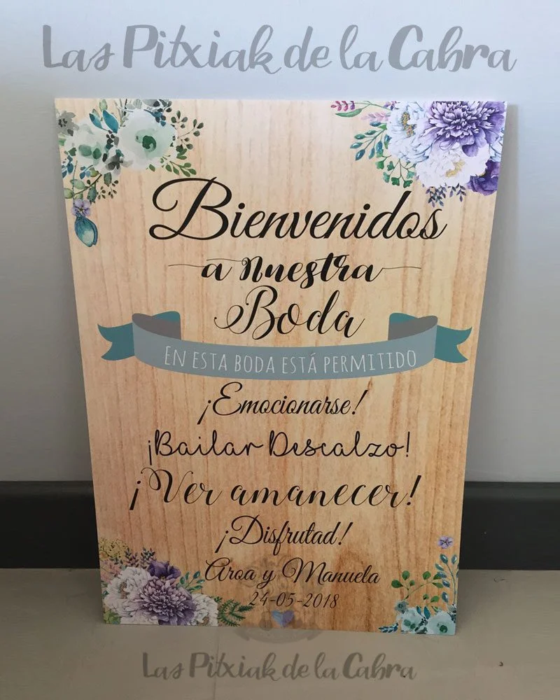 Como todos nuestros artículos, hacemos el diseño totalmente personalizado para los carteles de bienvenida. Todos nuestros artículos llevan un apartado de personalización en el que podéis escribir cualquier cosa que queráis modificar. Si os gusta este cartel pero queréis cambiarle el texto, añadir una foto vuestra, vuestro logo, o lo que se os ocurra, escribidlo en el apartado de personalización. Cualquier cosa que queráis que incluyamos, enviadla al mail del pedido.