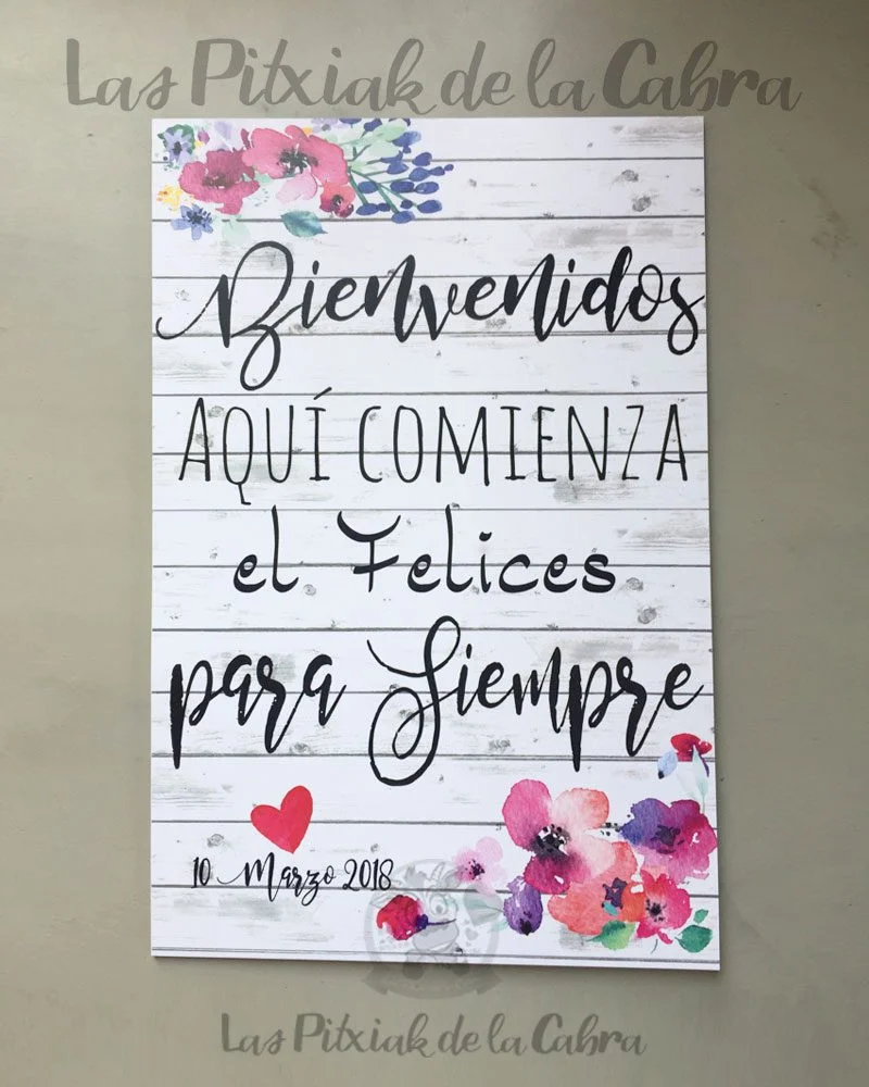 Como todos nuestros artículos, hacemos el diseño totalmente personalizado para los carteles de bienvenida. Todos nuestros artículos llevan un apartado de personalización en el que podéis escribir cualquier cosa que queráis modificar. Si os gusta este cartel pero queréis cambiarle el texto, añadir una foto vuestra, vuestro logo, o lo que se os ocurra, escribidlo en el apartado de personalización. Cualquier cosa que queráis que incluyamos, enviadla al mail del pedido.