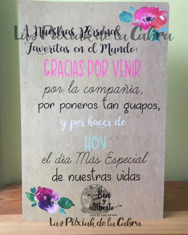 Como todos nuestros artículos, hacemos el diseño totalmente personalizado para los carteles de bienvenida. Todos nuestros artículos llevan un apartado de personalización en el que podéis escribir cualquier cosa que queráis modificar. Si os gusta este cartel pero queréis cambiarle el texto, añadir una foto vuestra, vuestro logo, o lo que se os ocurra, escribidlo en el apartado de personalización. Cualquier cosa que queráis que incluyamos, enviadla al mail del pedido.