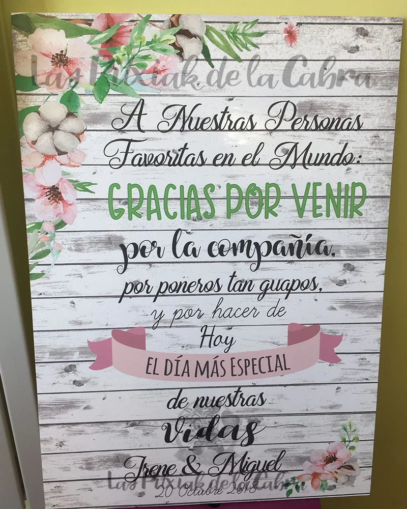 Como todos nuestros artículos, hacemos el diseño totalmente personalizado para los carteles de bienvenida. Todos nuestros artículos llevan un apartado de personalización en el que podéis escribir cualquier cosa que queráis modificar. Si os gusta este cartel pero queréis cambiarle el texto, añadir una foto vuestra, vuestro logo, o lo que se os ocurra, escribidlo en el apartado de personalización. Cualquier cosa que queráis que incluyamos, enviadla al mail del pedido.
