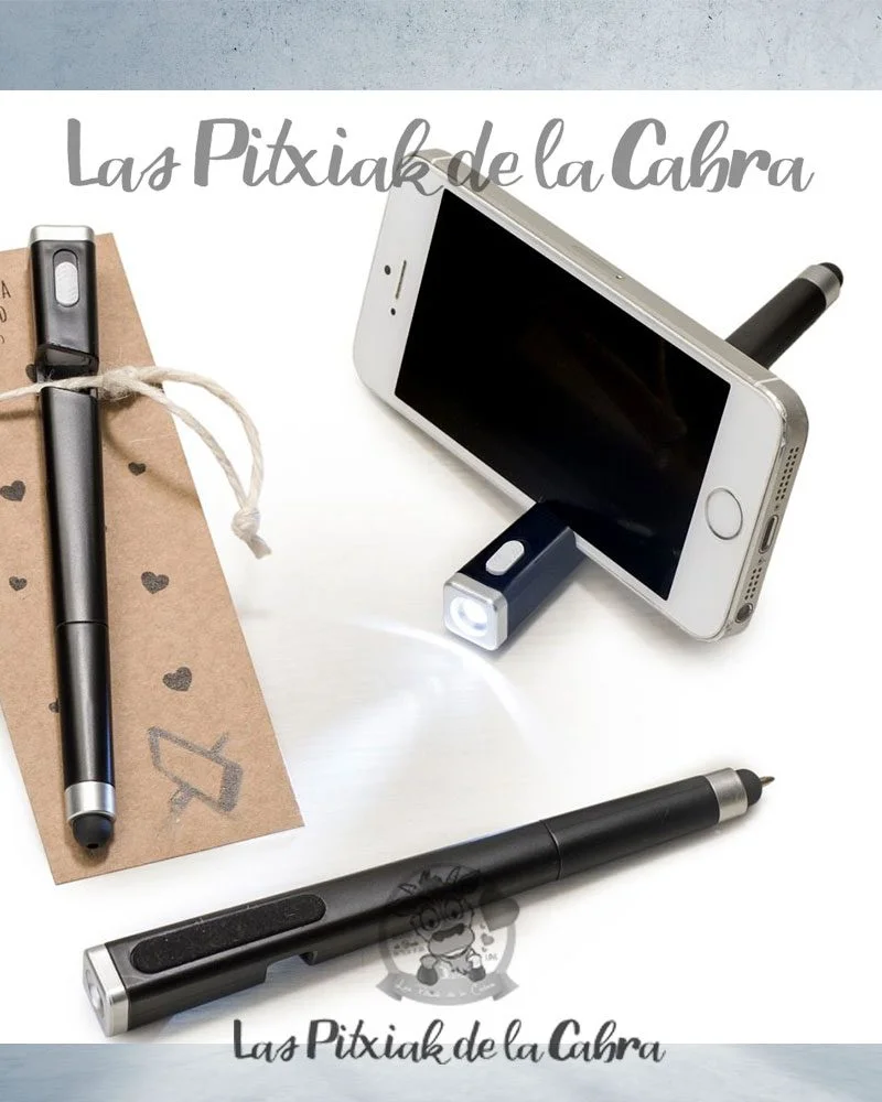 El Bolígrafo Linterna/Soporte Móvil es un detalle ideal para regalar a los invitados de tu boda, bautizo, comunión o cualquier clase de evento.
