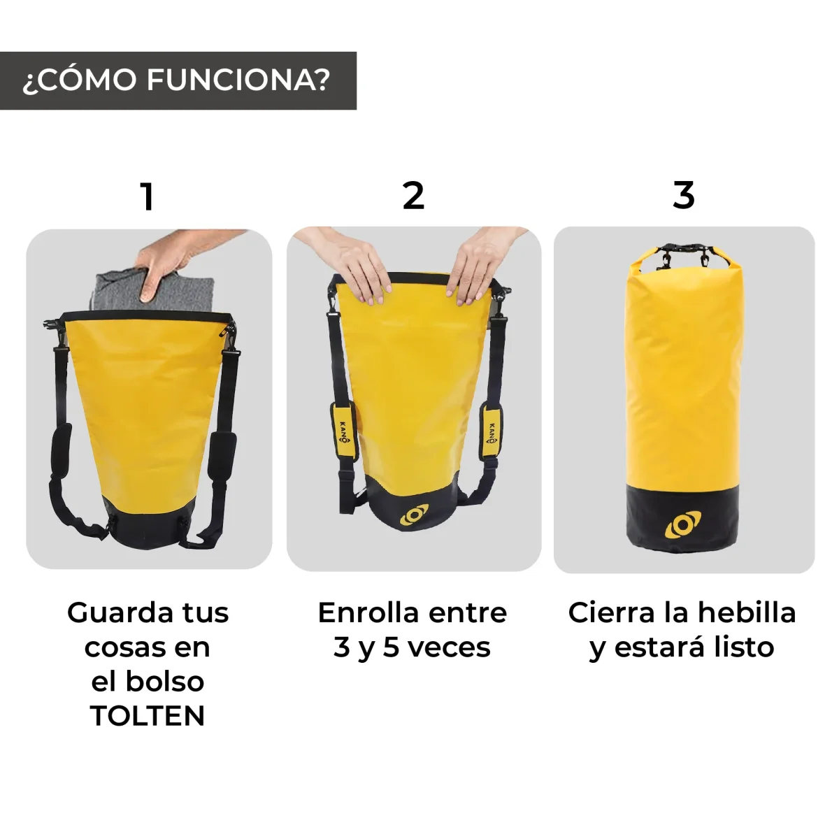 A diferencia de otros bolsos, el Bolso Seco Tolten posee dos correas desmontables para cargarlo tipo mochila, lo que lo convierte en un elemento super fácil de cargar y trasladar.