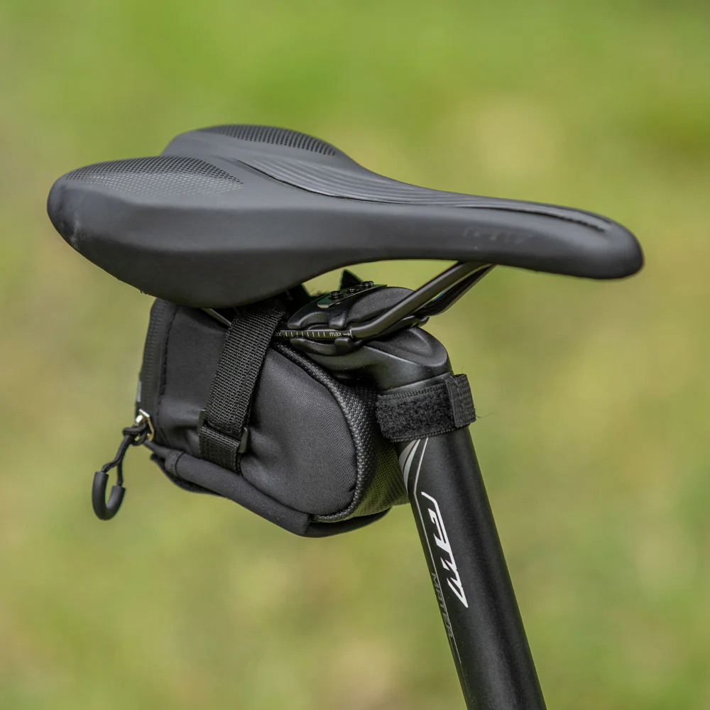 El Bolso GW Sticky se sujeta a los rieles del asiento por medio de correas de velcro y al tubo de sillín por medio de correa de velcro; se puede usar tanto en ciclismo de MTB, Ruta o urbano. En su interior se puede guardar: neumático, palancas, llave tipo navaja Bristol y algunos parches con pega. Cuenta con detalles reflectantes para mejorar la visibilidad de los ciclistas.