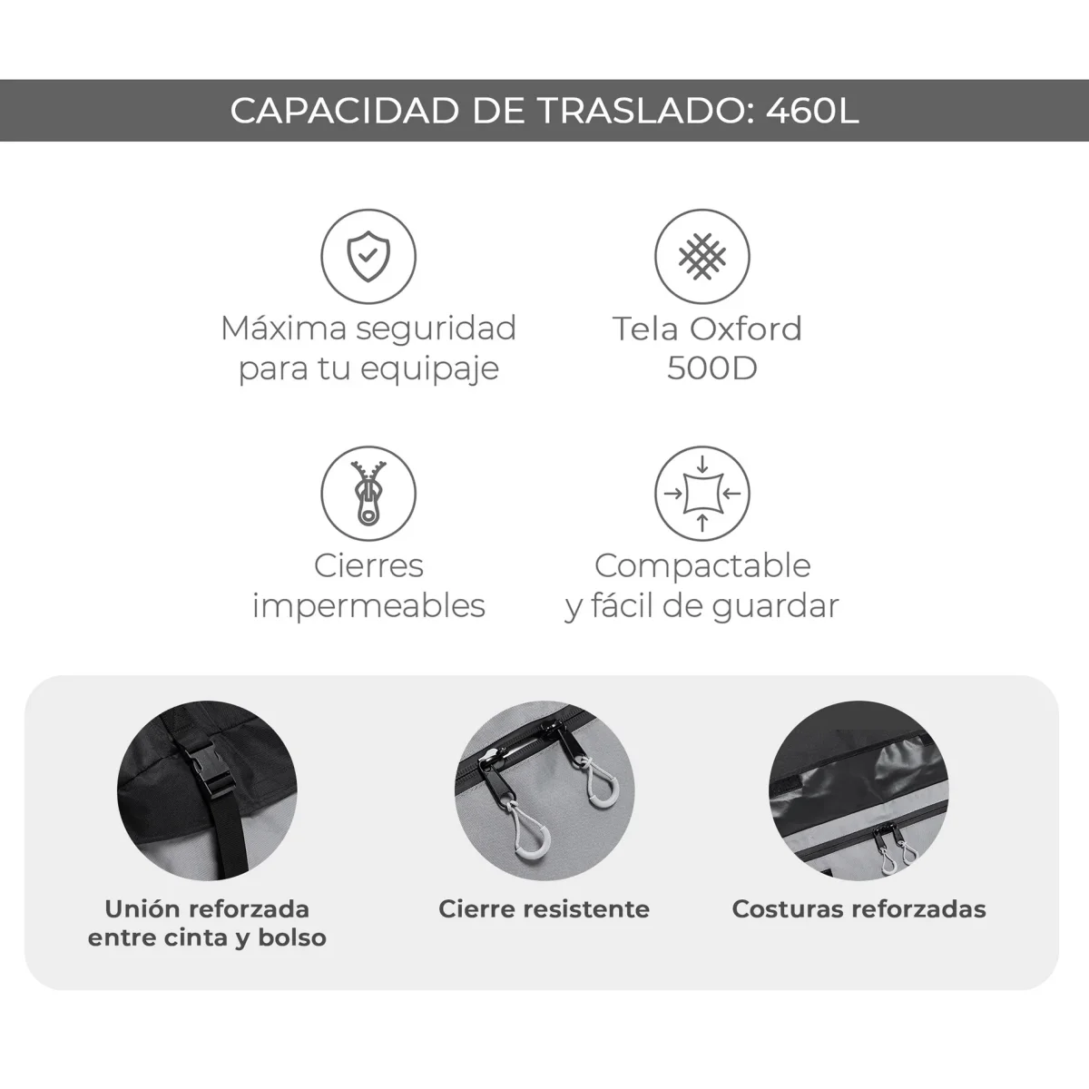 - Material del bolso: Tela Oxford 500D
