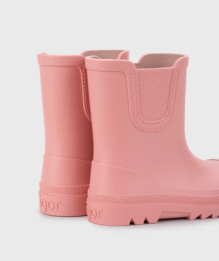 El Igor Verona barefoot es un botín de agua infantil diseñado para mantener los pies secos y cómodos en los días de lluvia, respetando siempre la forma natural del pie. Con un estilo monocolor en acabado mate, ofrece un diseño minimalista, versátil y fácil de combinar tanto en color azul como en rosa.