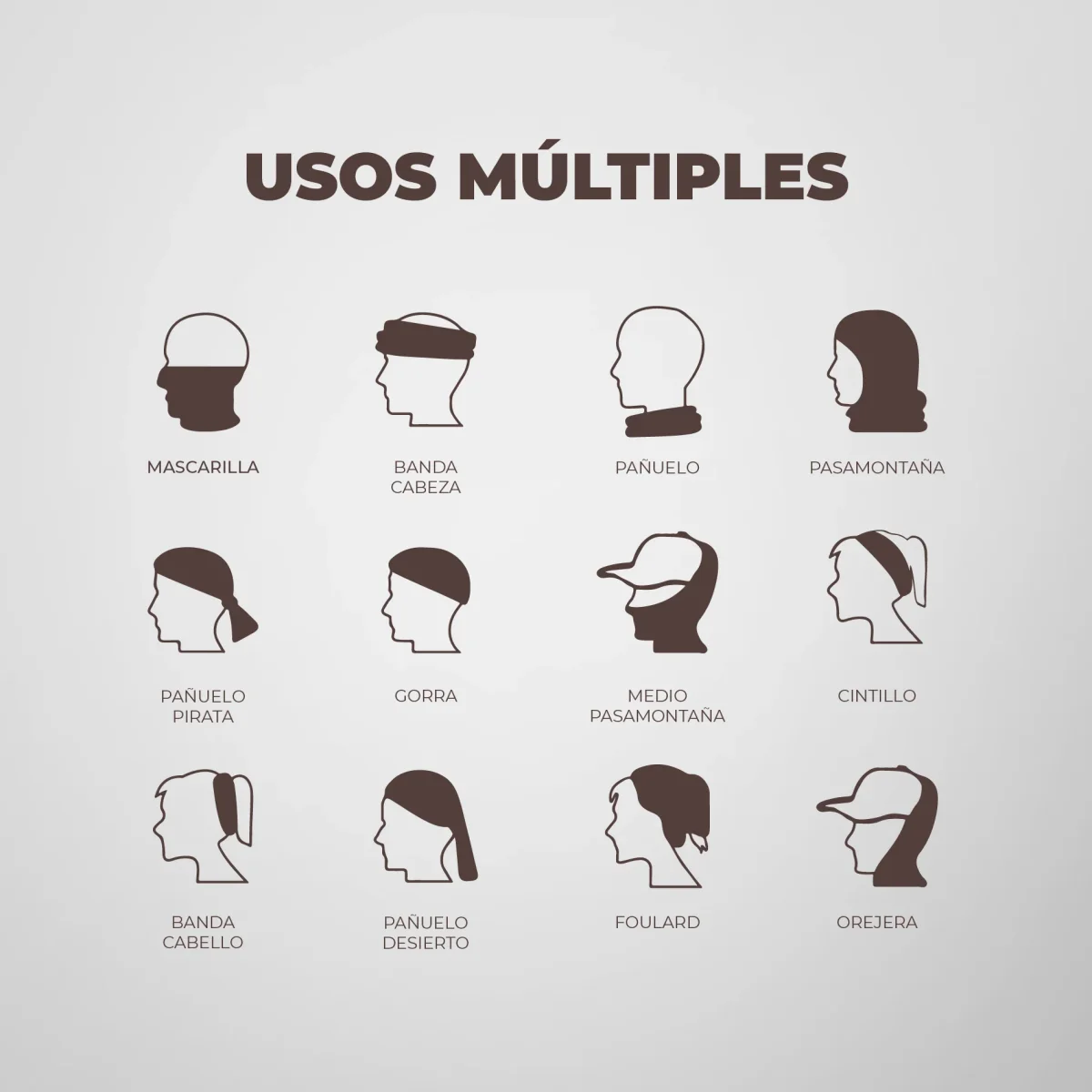 Puedes utilizar esta bufanda de muchas maneras: como cuello, bufanda, bandana, gorro, máscara facial para protegerte del polvo y el sol, cintillo para sostener el pelo o lo que tu actividad outdoor te pida.