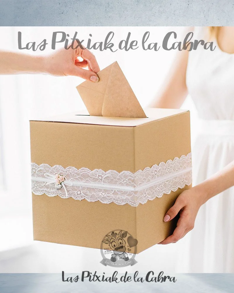 La Caja para Sobres Kraft Encaje tiene en su parte superior encontrarás una ranura para introducir las tarjetas con los deseos.
