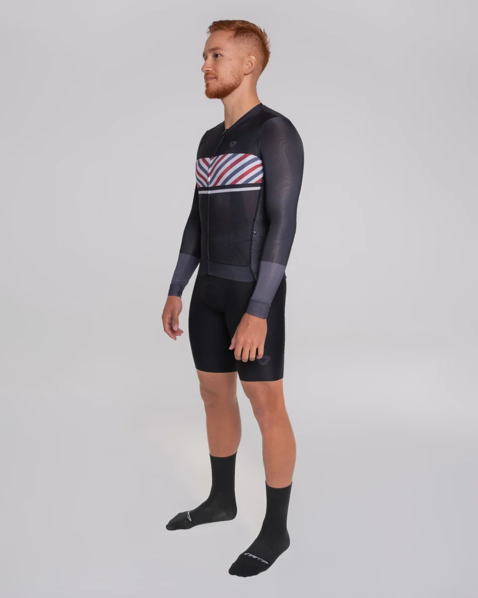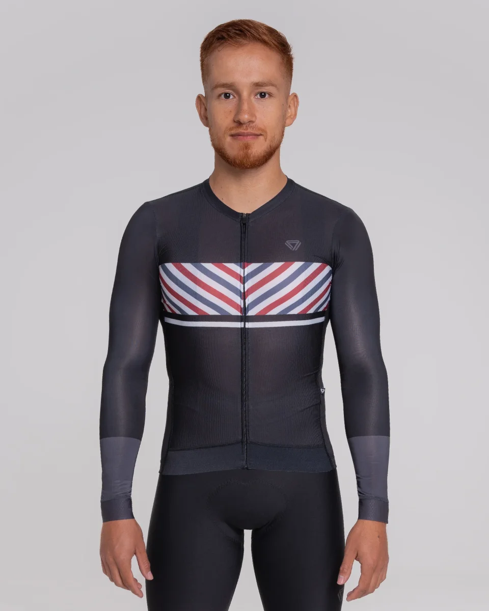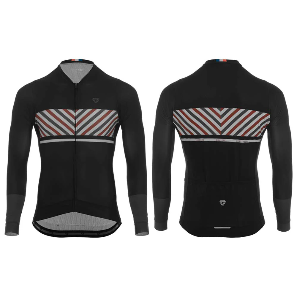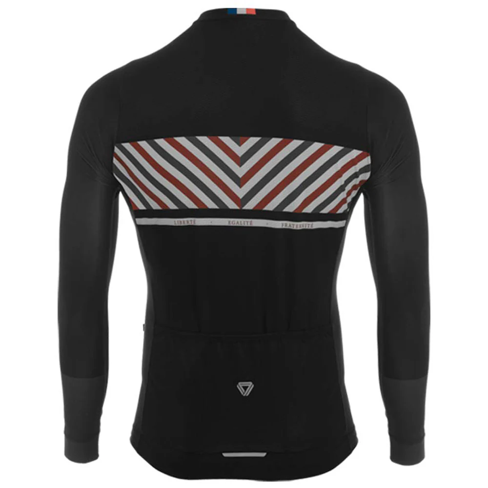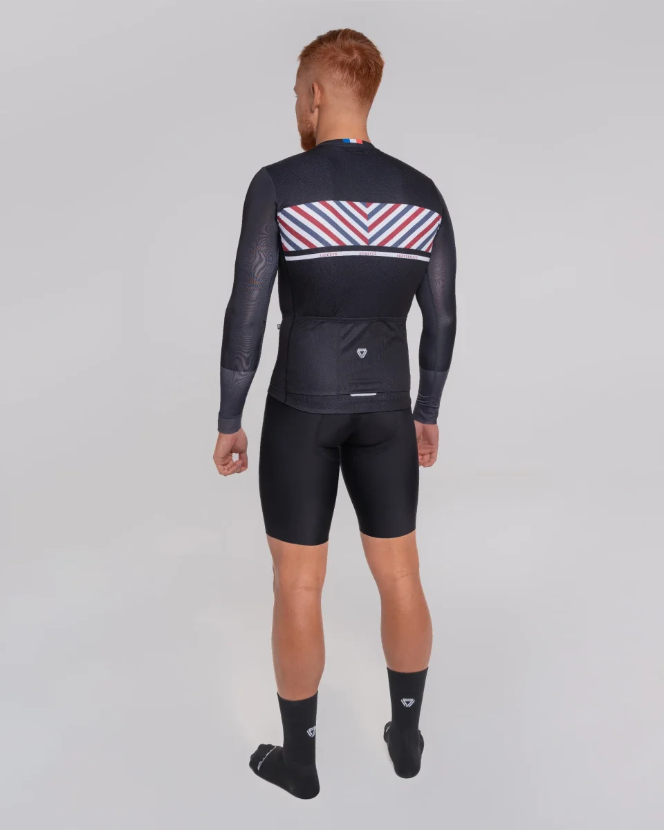 Esta camiseta de la colección Liberté inspirada en Francia cuenta con un diseño exclusivo y sobrio que las hacen más fácil de combinar con cualquier outfit. Está construida con tejidos livianos y con mayor elasticidad, transpirabilidad y excelentes propiedades de absorción, y un bloqueo efectivo del sol. Una prenda con un ajuste perfecto, las mangas largas con acabado en puño antideslizante. Los bolsillos están ubicados con una altura perfecta y reforzados en la parte posterior de la camiseta, se expanden para llevar todo lo esencial, y cuentan con detalles altamente reflectivos para una mejor visibilidad en la carretera. Su cremallera con un slider semi automático, lo cual ofrece una mayor seguridad y se desliza fácilmente.