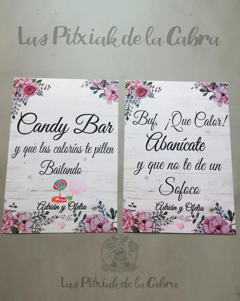Cartel “Candy Bar o Abanícate” fue un diseño que creamos específicamente para estos novios.