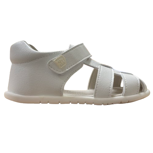 Sandalias barefoot infantiles Piruflex Canet beige y blanco