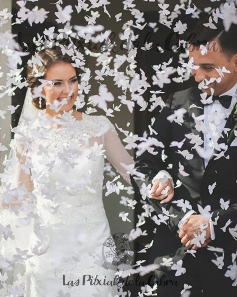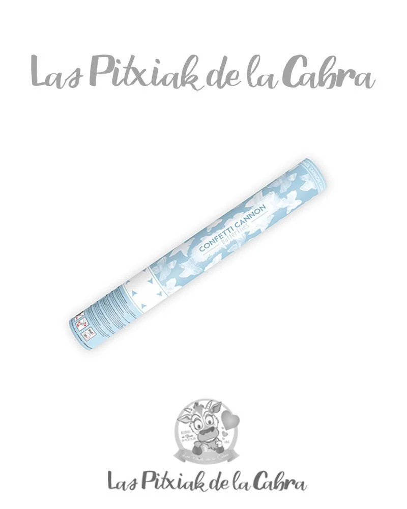 Se compone de un cañón de aire comprimido que al accionarlo se dispararán unas bonitas mariposas de papel de color blanco.