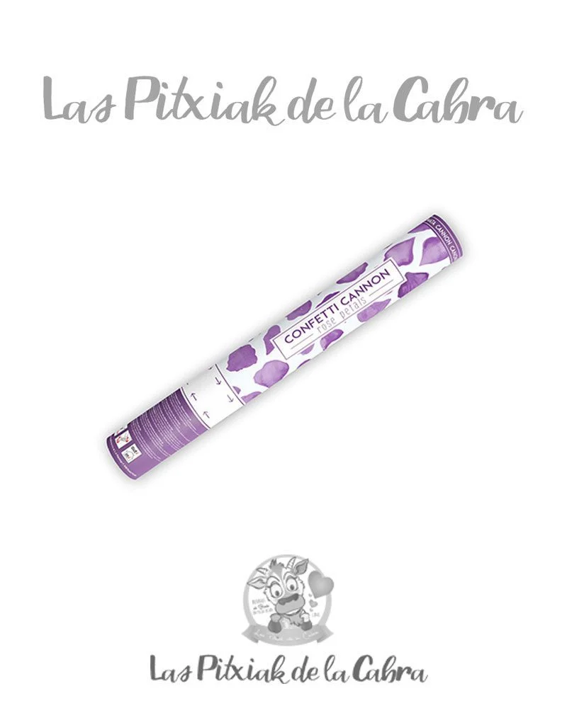 Se compone de un cañón de aire comprimido que al accionarlo se dispararán unos bonitos pétalos de papel de color lila.