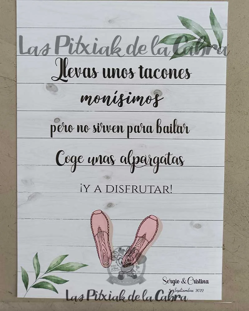 El Cartel Alpargatas Sergio&Cristina fue un diseño que creamos específicamente para estos novios que nos encargaron a juego toda la papelería para su boda.