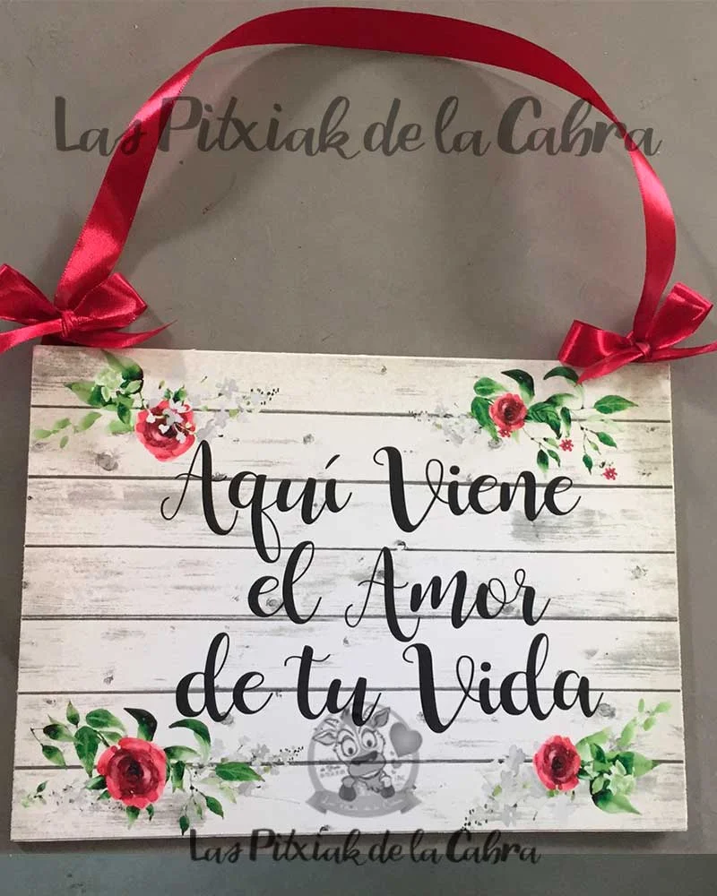 ¿Sabías que…? Este Cartel Aquí viene el amor de tu vida está hecho a medida para una novia que quería modificar uno de nuestros carteles.