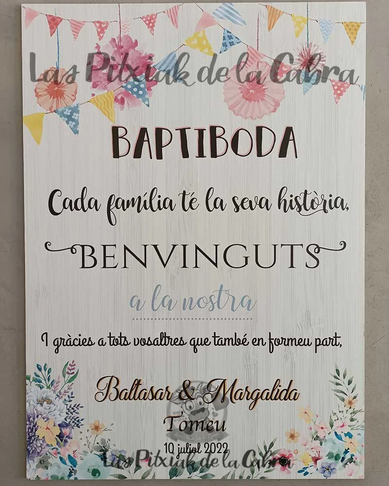 Como todos nuestros artículos, hacemos el diseño totalmente personalizado para los carteles de bienvenida. Todos nuestros artículos llevan un apartado de personalización en el que podéis escribir cualquier cosa que queráis modificar. Si os gusta este cartel pero queréis cambiarle el texto, añadir una foto vuestra, vuestro logo, o lo que se os ocurra, escribidlo en el apartado de personalización. Cualquier cosa que queráis que incluyamos, enviadla al mail del pedido.