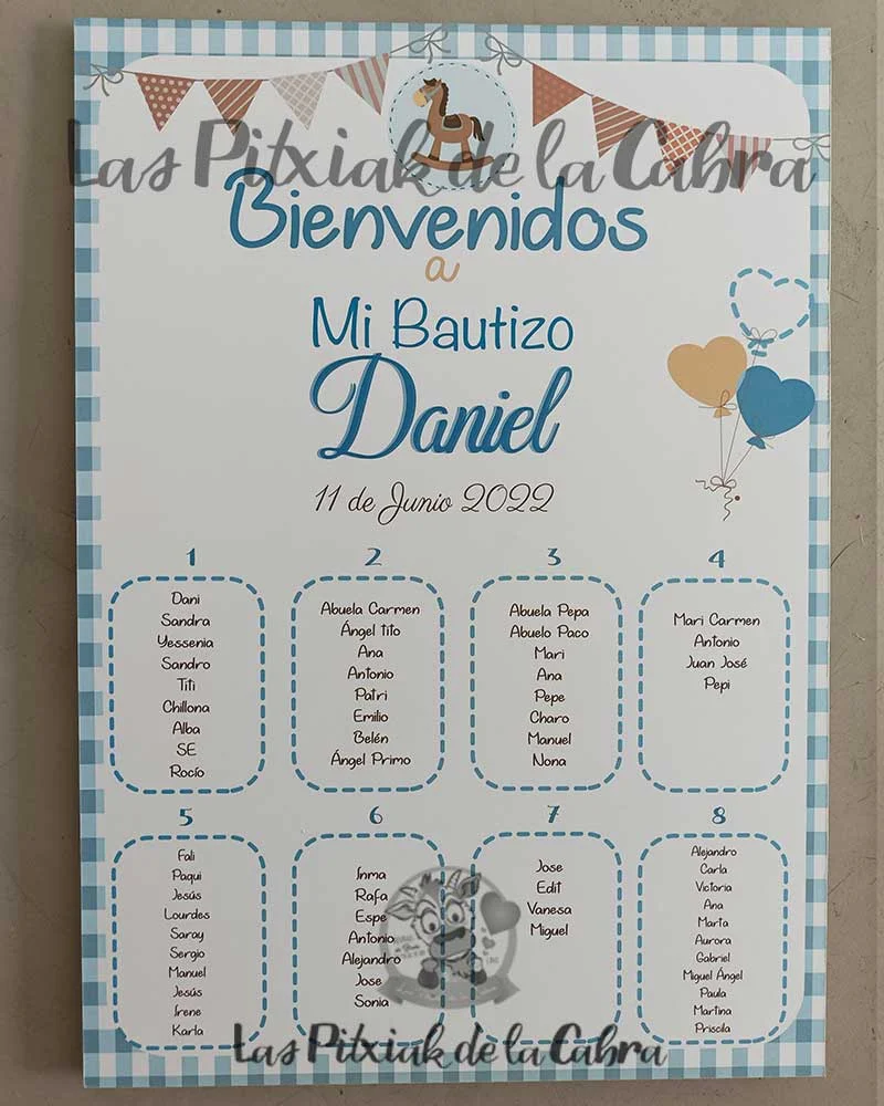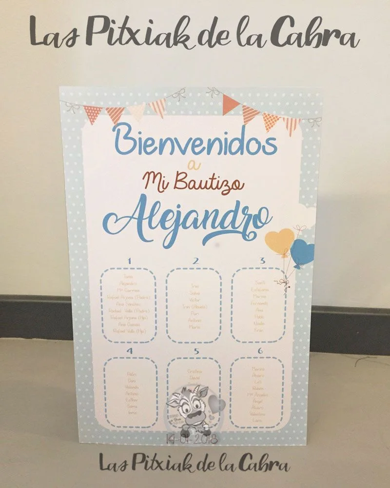 Para el Bautizo de Alejandro hicimos este cartel con seating, para que todos los invitados supieran donde tenían que sentarse.