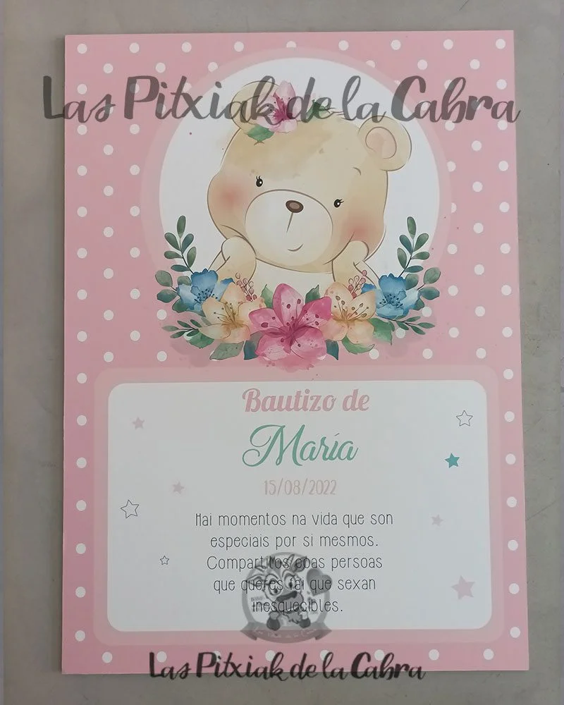 Cartel Bienvenida Bautizo María, es decir, que aunque en la web veis modelos limitados, todo lo que soñéis, para vuestra boda, bautizo, comunión, cumpleaños o cualquier otro evento, nosotros lo haremos posible.