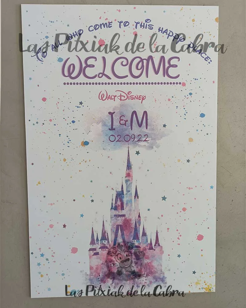 ¿Sabías que…? El Cartel Bienvenida Castillo Disney es un diseño muy original que nos encargaron estos novios para su boda con toda la papelería a juego.