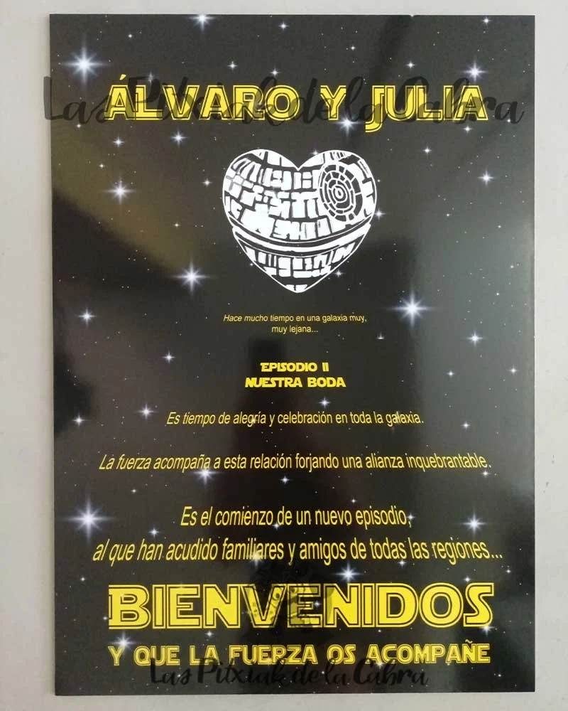 ¿Sabías que…? El Cartel Bienvenida Star Wars es un diseño muy original que nos encargaron Álvaro y Julia para su boda con toda la papelería a juego.