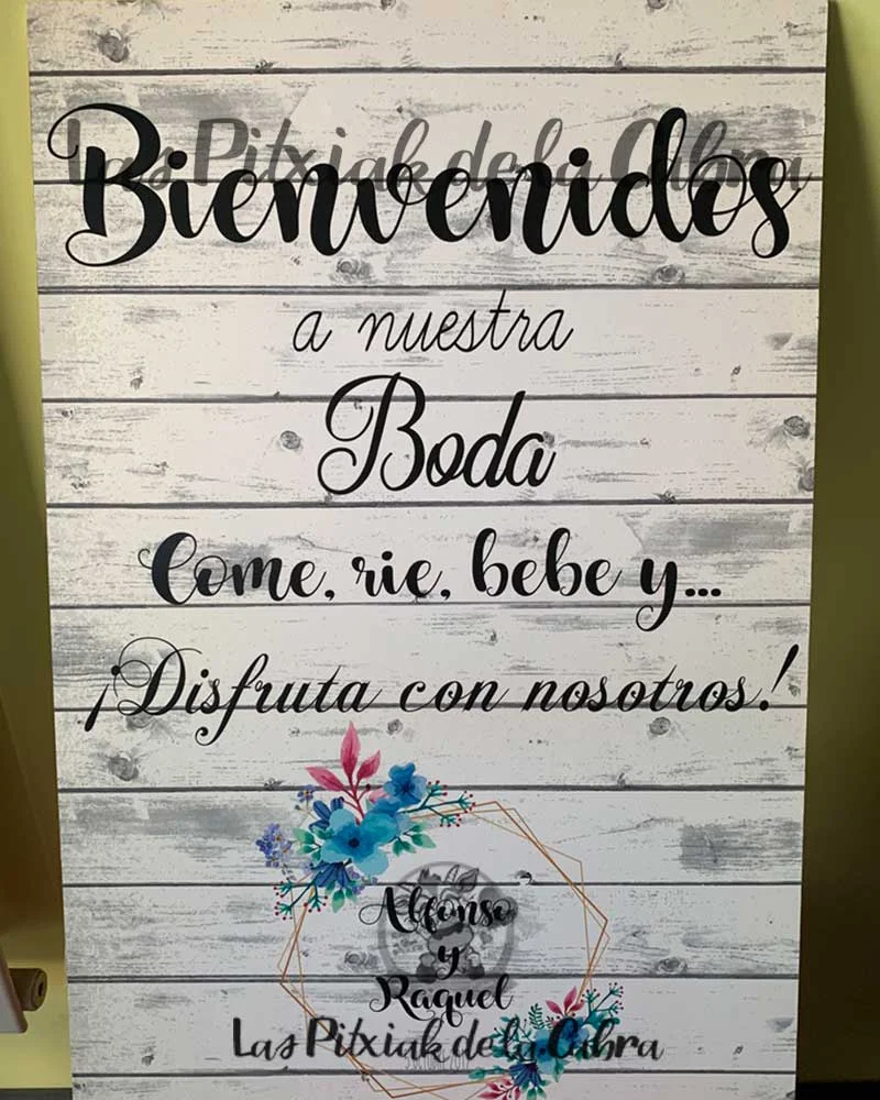 Como todos nuestros artículos, hacemos el diseño totalmente personalizado para los carteles de bienvenida. Todos nuestros artículos llevan un apartado de personalización en el que podéis escribir cualquier cosa que queráis modificar. Si os gusta este cartel pero queréis cambiarle el texto, añadir una foto vuestra, vuestro logo, o lo que se os ocurra, escribidlo en el apartado de personalización. Cualquier cosa que queráis que incluyamos, enviadla al mail del pedido.