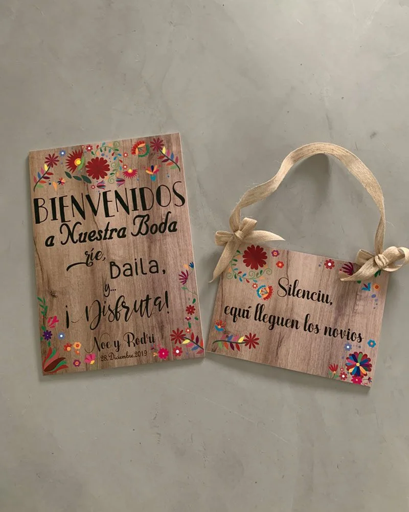 ¿Sabías que…? Cartel Bienvenidos folclore tradicional, la novia nos pidió la cartelería con las flores tradicionales de su país.