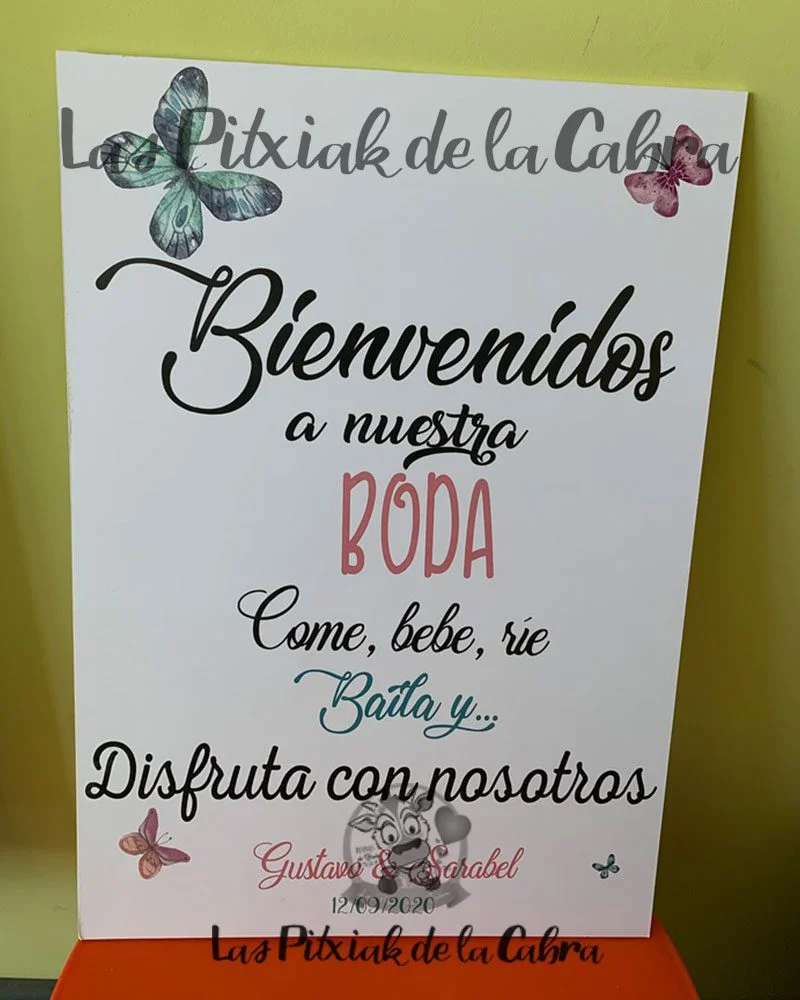 Como todos nuestros artículos, hacemos el diseño totalmente personalizado para los carteles de bienvenida. Todos nuestros artículos llevan un apartado de personalización en el que podéis escribir cualquier cosa que queráis modificar. Si os gusta este cartel pero queréis cambiarle el texto, añadir una foto vuestra, vuestro logo, o lo que se os ocurra, escribidlo en el apartado de personalización. Cualquier cosa que queráis que incluyamos, enviadla al mail del pedido.
