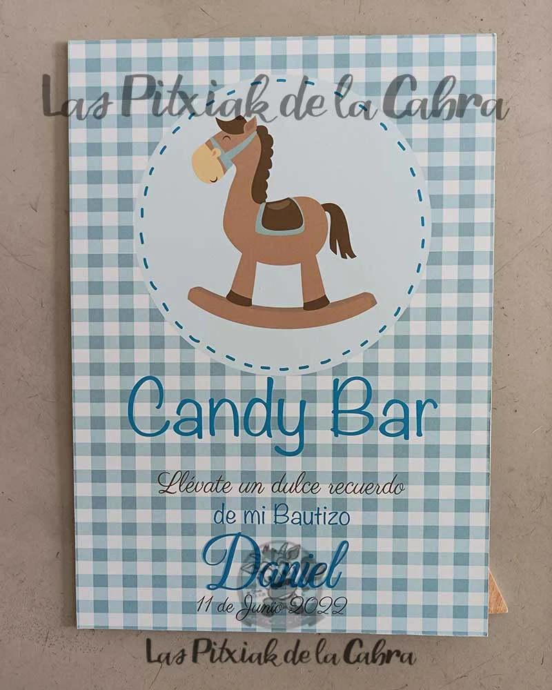 En el Cartel Candy Bar Bautizo Daniel podemos plasmar cualquier frase, dibujo o cualquier idea.