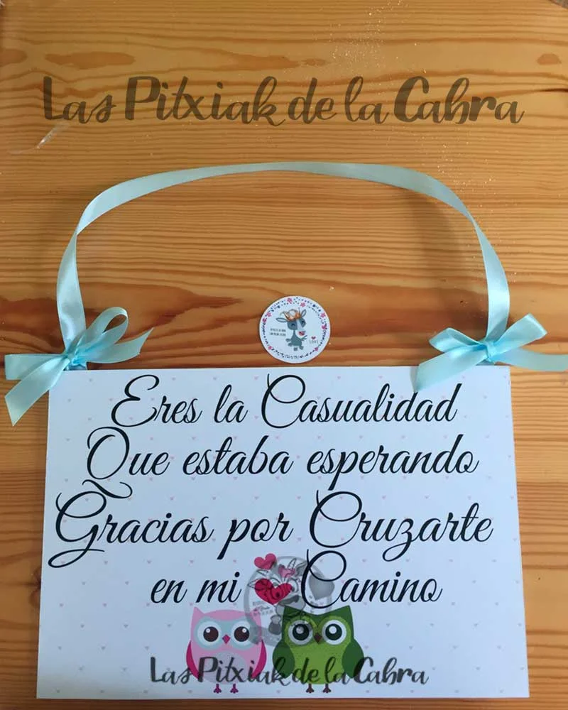 Este tipo de carteles llevan la impresión sobre papel, una base de panelado de madera y el lacito para colgar. Son carteles ligeros que no pesan pero también son resistentes, no se doblan, ni rompen facilmente. El diseño se hace completamente personalizado, así como el lacito, también podemos ponerlo del color que queráis. Su medida es de 297×210 mm el modelo rectangular y de 285x235mm el modelo con forma de corazón.