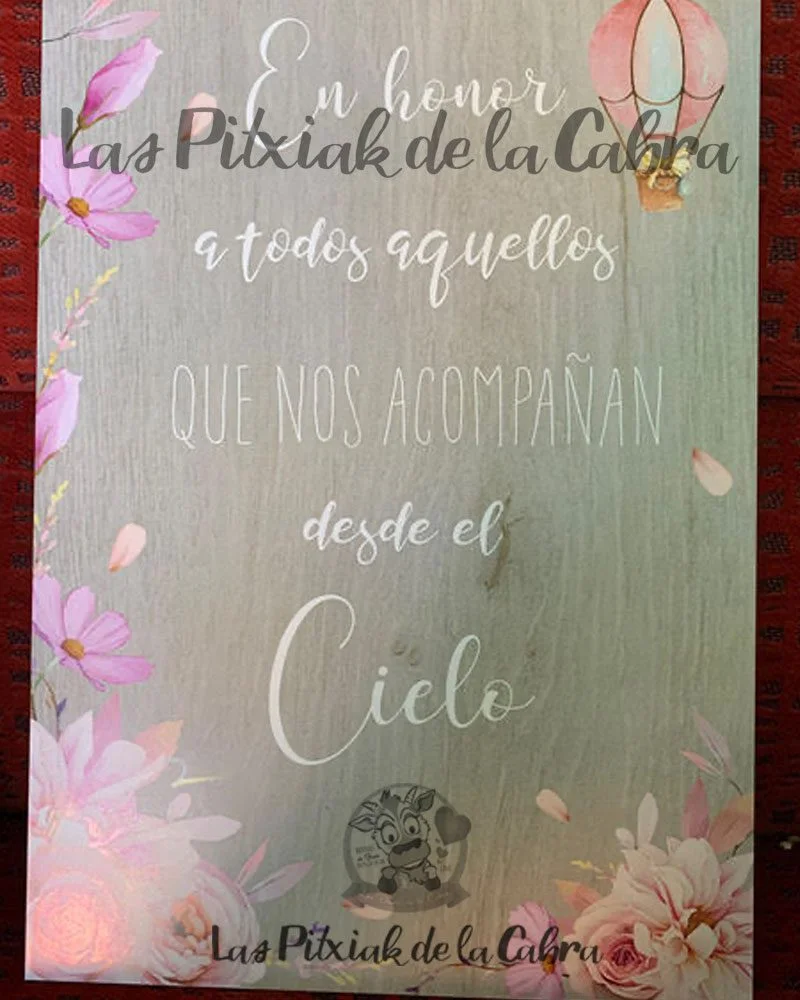¿Sabías que…? Cartel Globo Cielo lo hicimos por primera vez para esta pareja que nos pidieron un diseño con texto de otro de nuestros carteles y el fondo que eligieron.