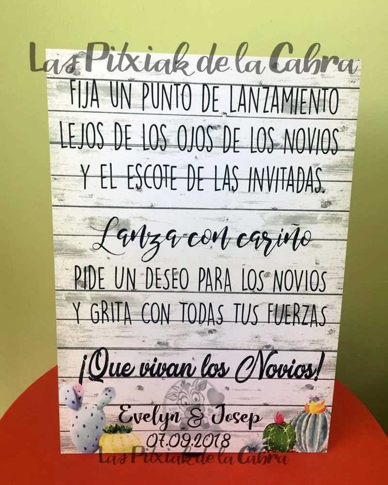 Como todos nuestros artículos, hacemos el diseño totalmente personalizado para los carteles. Todos nuestros artículos llevan un apartado de personalización en el que podéis escribir cualquier cosa que queráis modificar. Si os gusta este cartel pero queréis cambiarle el texto, añadir una foto vuestra, vuestro logo, o lo que se os ocurra, escribidlo en el apartado de personalización. Cualquier cosa que queráis que incluyamos, enviadla al mail del pedido.