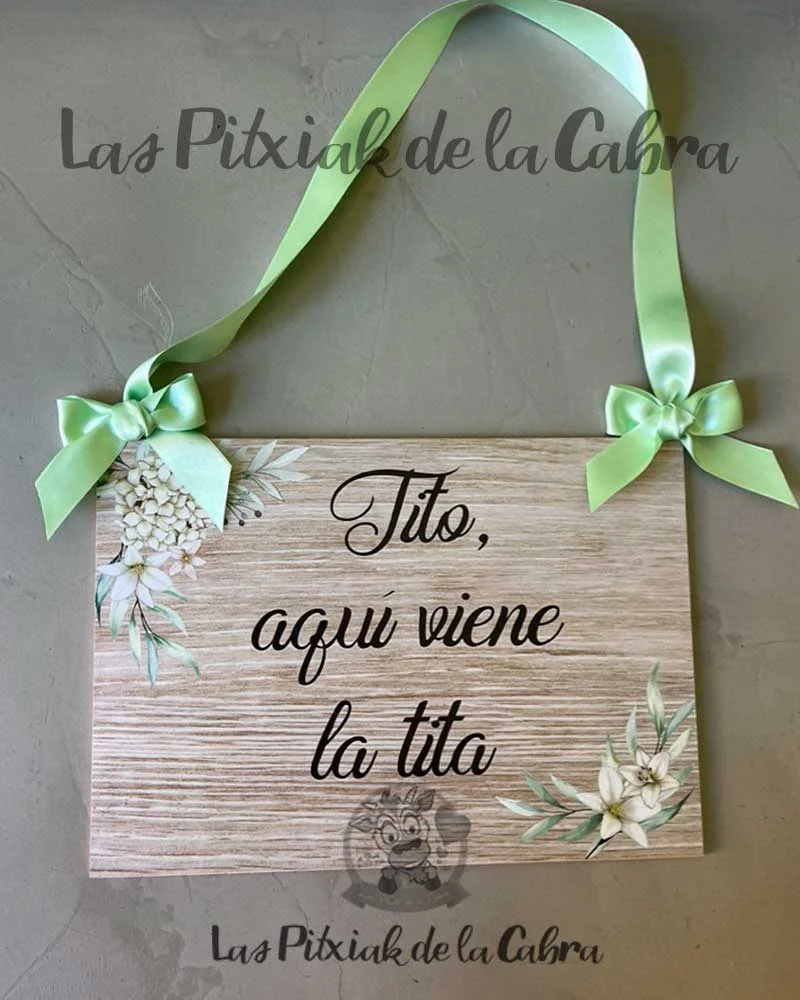 Este tipo de carteles llevan la impresión sobre papel, una base de panelado de madera y el lacito para colgar. Son carteles ligeros que no pesan pero también son resistentes, no se doblan, ni rompen facilmente. El diseño se hace completamente personalizado, así como el lacito, también podemos ponerlo del color que queráis. Su medida es de 297×210 mm el modelo rectangular y de 285x235mm el modelo con forma de corazón.