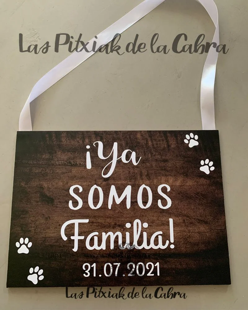 ¿Sabías que…? Este Cartel Somos Familia está hecho a medida para una novia que quería incluir en el diseño huellas de perro.